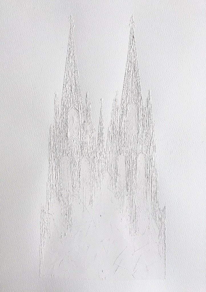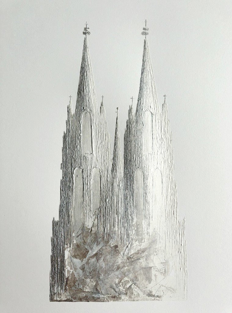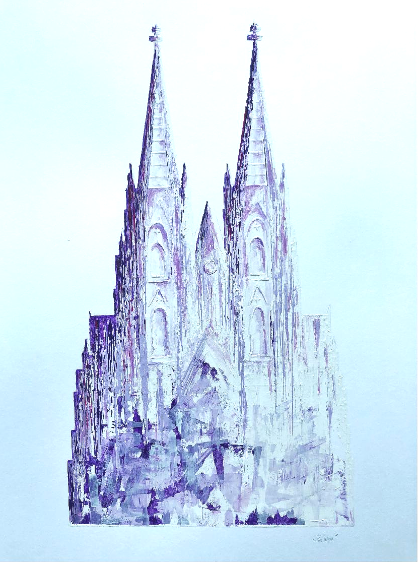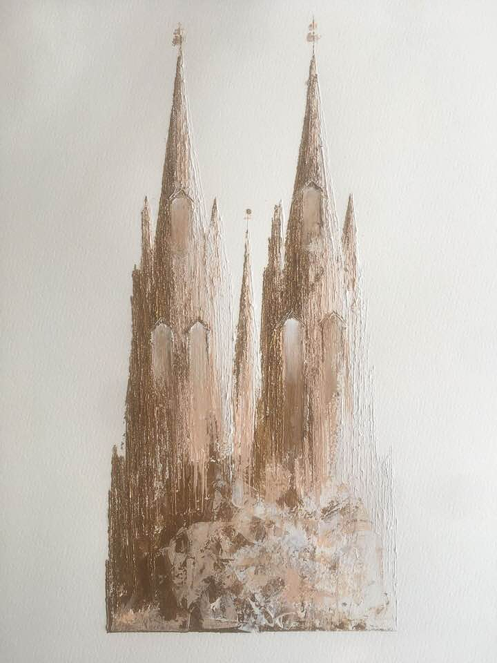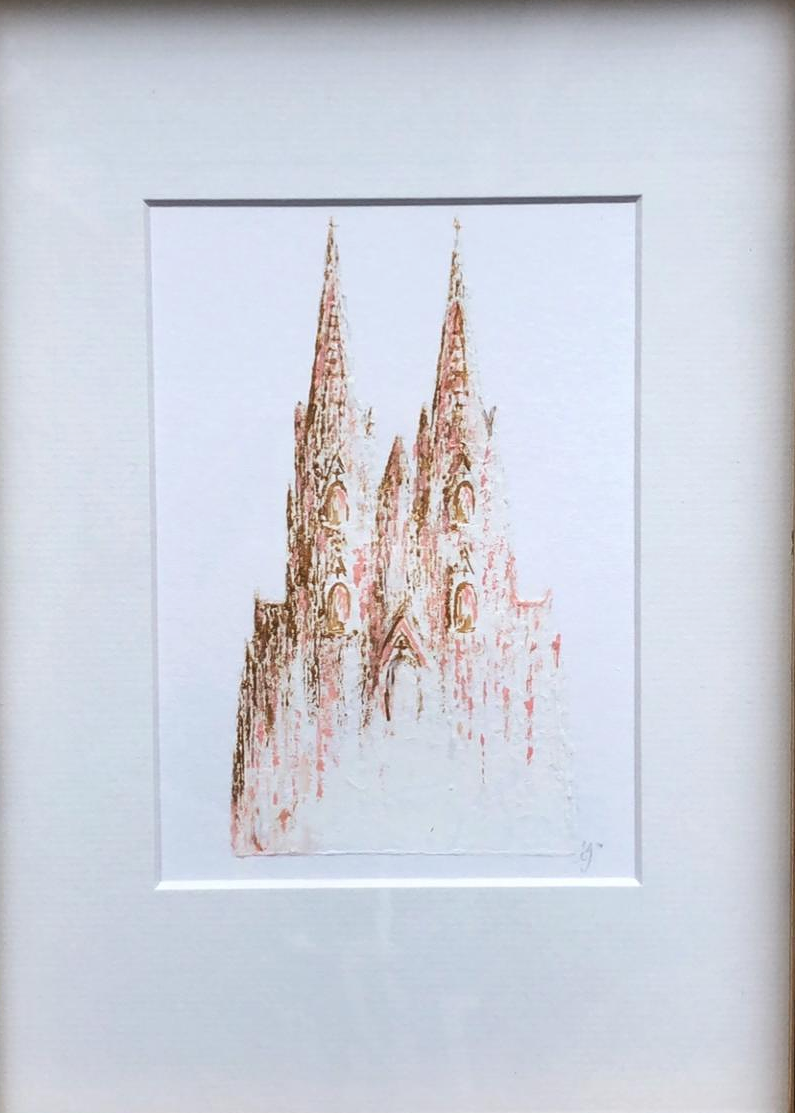 In meiner aktuellen Kunstreihe setze ich den Kölner Dom als das Wahrzeichen meiner Heimatstadt Köln in Szene. hierbei arbeite ich mit Hochwertiger Acrylfarbe auf Papier und Karton. das auftragen mit der spachtel verleiht den bildern einen dreidimensionalen effekt und spielt auf den charakteristischen rauen sandstein des doms an.